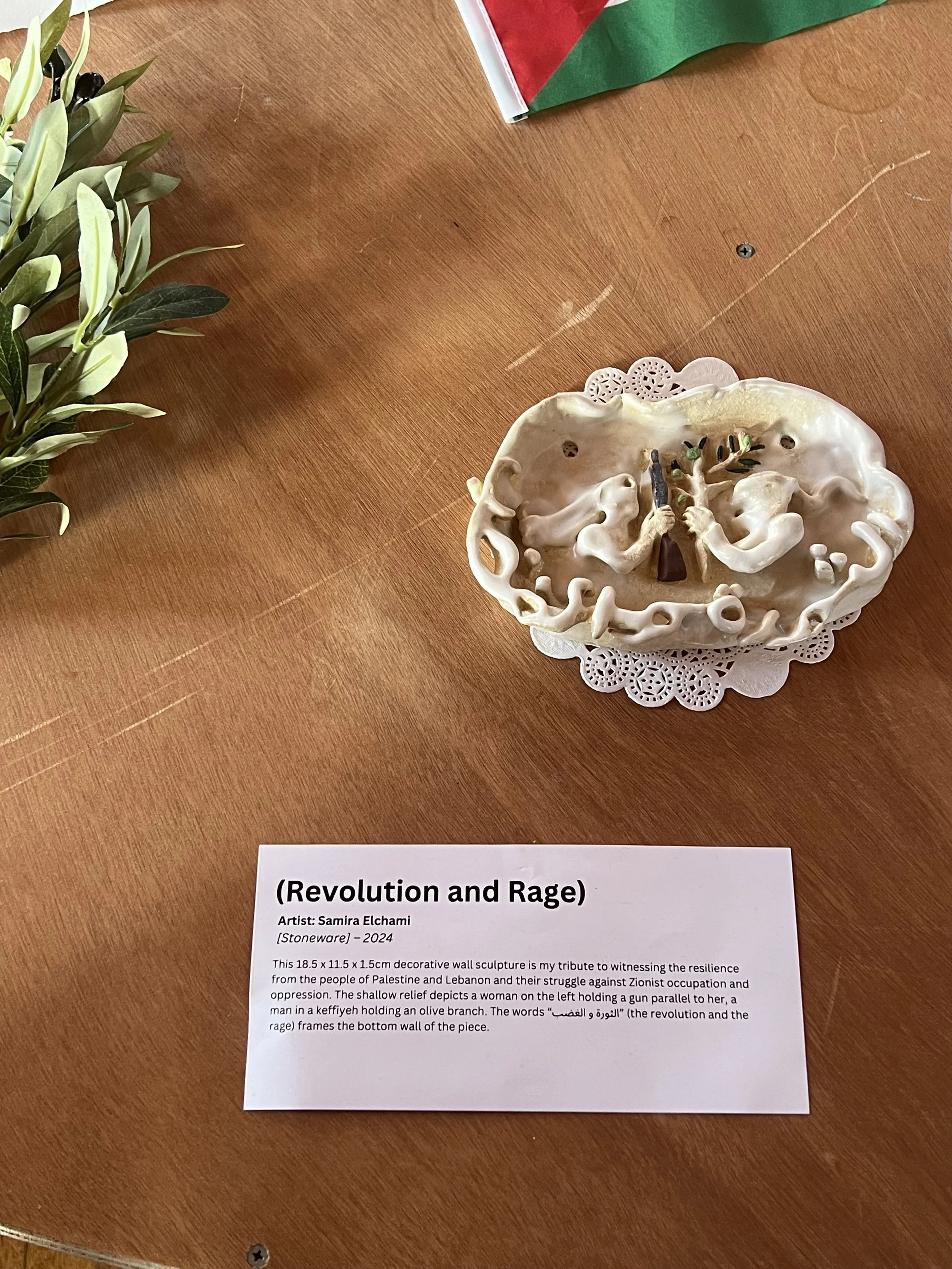 Her work combines the classical elegance of Arabic calligraphy with her contemporary and satirical nature through handbuilding sculptural and decorative clay pieces. It touches on themes of exaggerating the mundane, appreciating everyday objects which often go unnoticed, utilising her language and experiences to further establish a genuine connection with her pieces. She honors the slow life that might have flourished if not for colonial infiltration and destruction sought by western imperialists , which have distorted the essence of Bilad Al-Sham / The Levant.